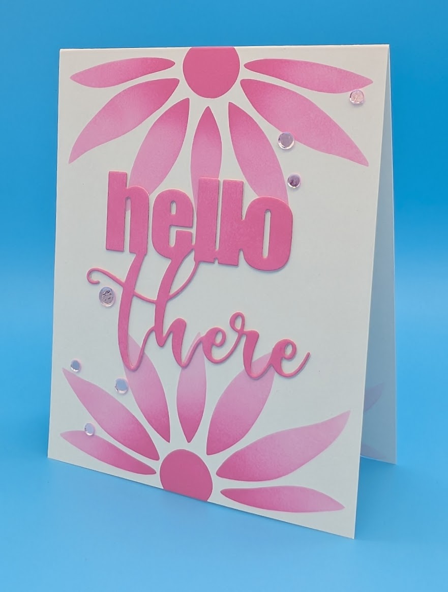 Can Be easily batched with differing colors and sentiments.  Tip:  Ink blend a scrap white card the same color as the design to die cut the sentiment.