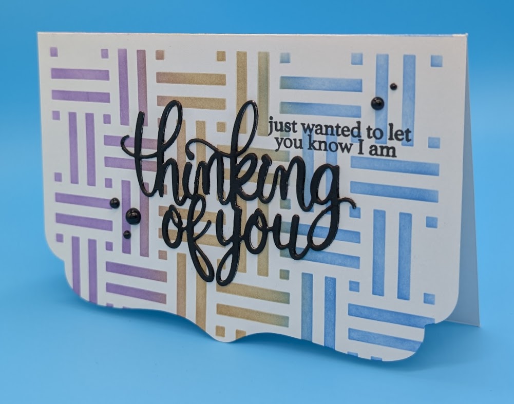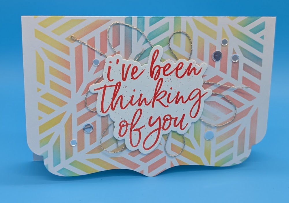 Make it quick by ink blending on a shaped card and adding a large sentiment. Add twine behind the sentiment and/or add a sub-sentiment for interest.