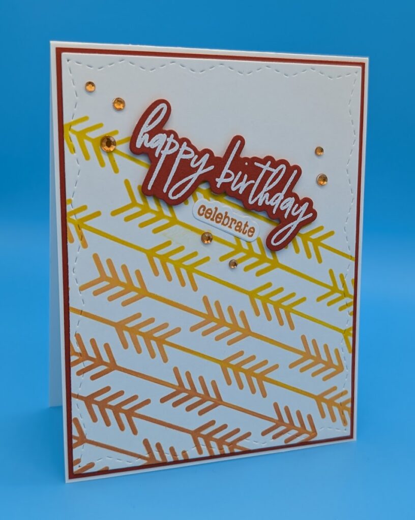 To get even more use out of stencils, try a different orientation to your paper.  Shifting the stencil around to get a new look as well as blending different colors throughout can help in refreshing the look of your projects.