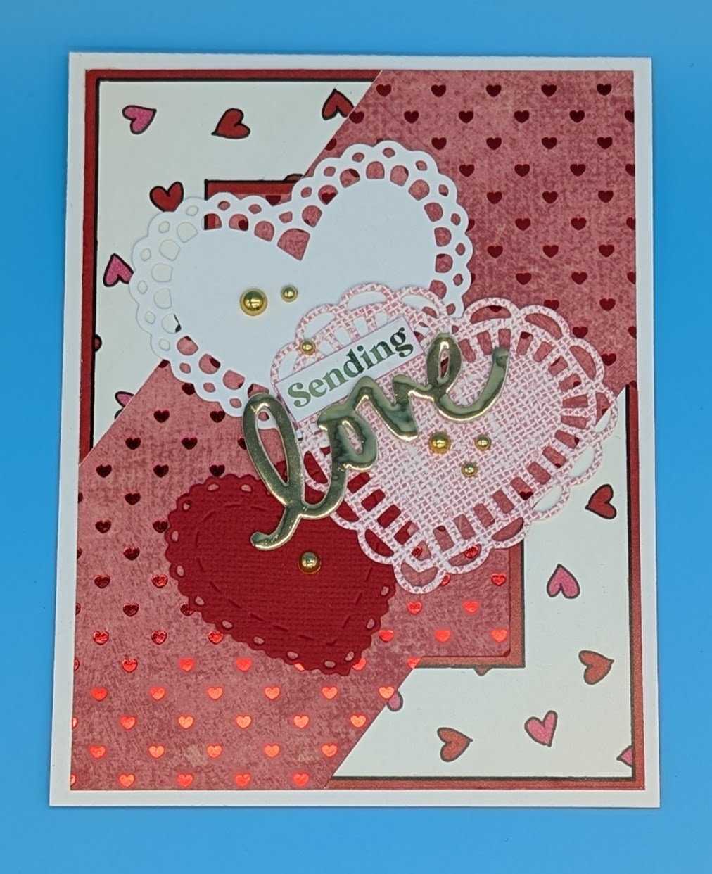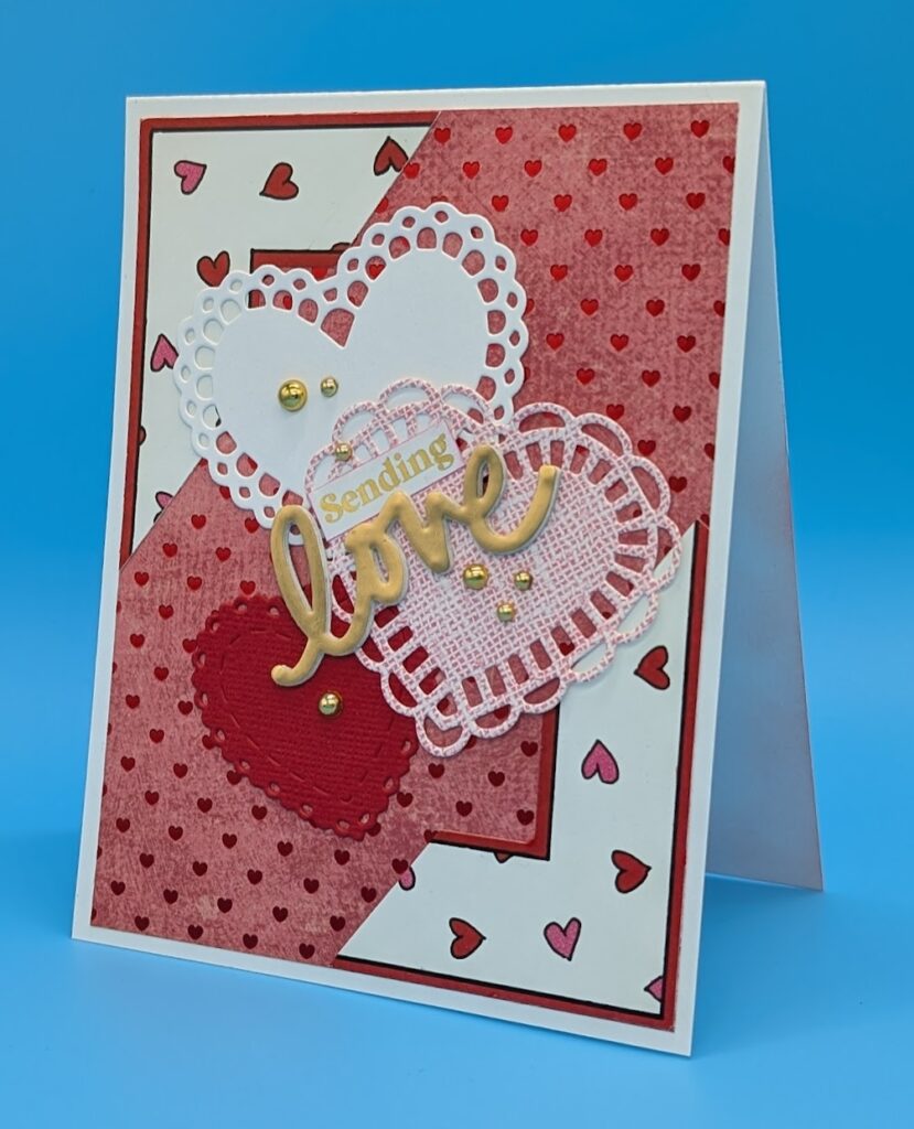 Sending Love Feb 5, 2026 | Holiday, Valentine's Day | 0 Quick Card Supply List: Scrapbook.com Heart Doilies die set Little Yellow Bicycle “love, laugh, smile” die set Pink Fresh Gold Metallic Pearls pattern paper gold card Valentine ephemera sentiment strip adhesive foam tape A2 card base